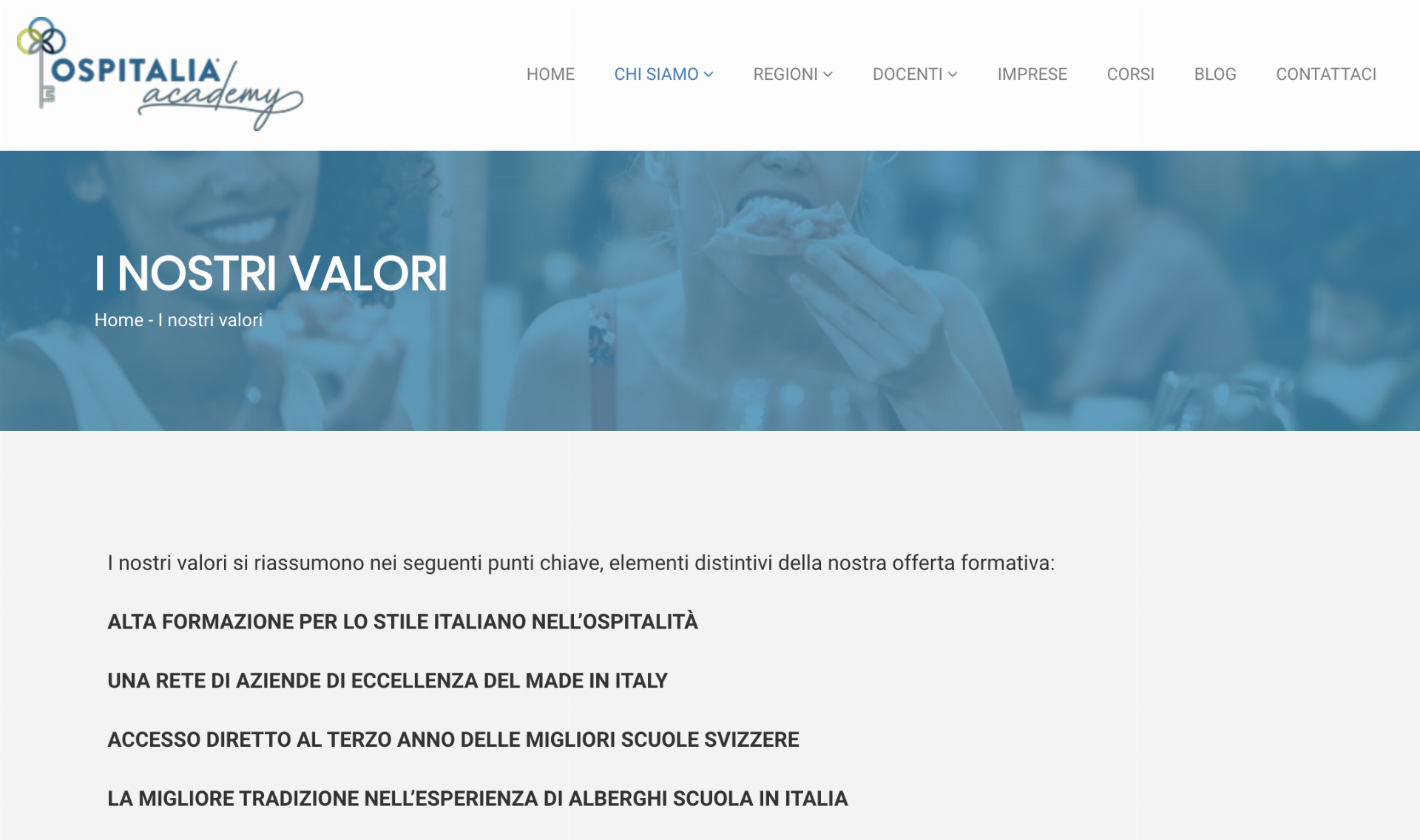 I percorsi di formazione promossi da OSPITALIA ACADEMY sono unici per la metodologia impiegata che consente di accedere dopo il biennio anche alle migliori scuole svizzere, per la qualità dei docenti e per il panel di imprese che sostengono OSPITALIA ACADEMY .